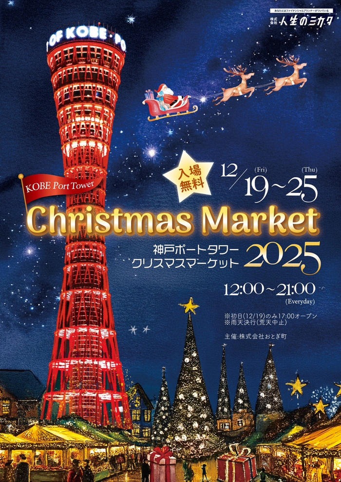 神戸ポートタワーのふもとで、入場無料の『クリスマスマーケット』が今年も開催されます。