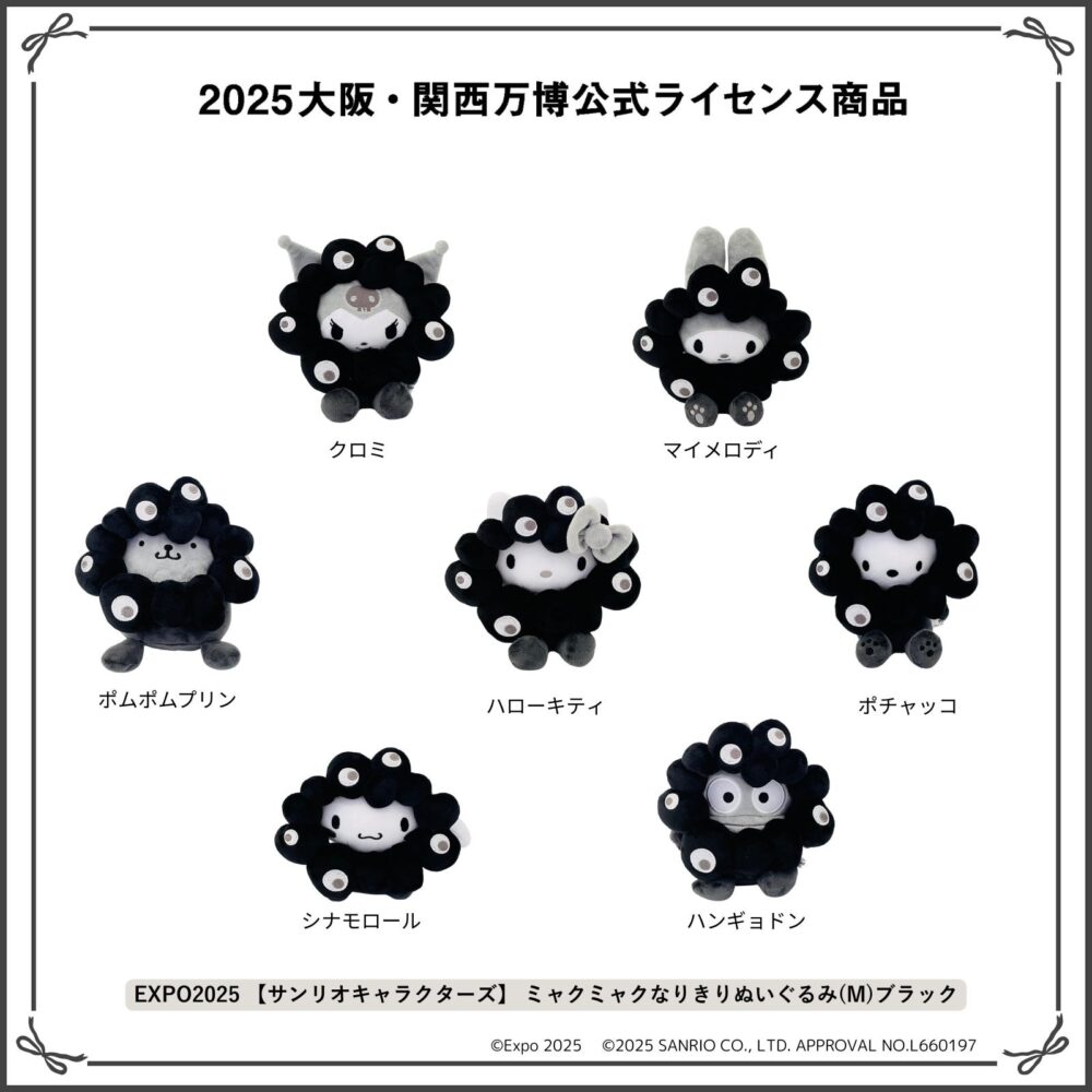 大阪・関西万博公式ライセンス商品「EXPO2025 ミャクミャク サンリオキャラクターズ コラボレーショングッズ」から『ブラックぬいぐるみシリーズ』が受注販売されます。