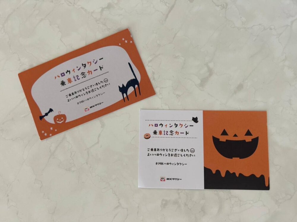 乗車すると、乗車記念カードのプレゼントも。子どもには「ハロウィンイラスト入り飴」のプレゼントも用意されています。