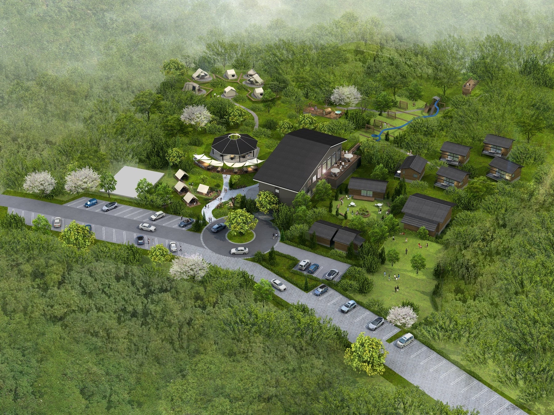 京都府京田辺市に、自然体験をテーマとしたアウトドアホテル&BBQ場『ウッドデザインパーク京都-彩-』が2026年5月23日(土)にグランドオープンします。