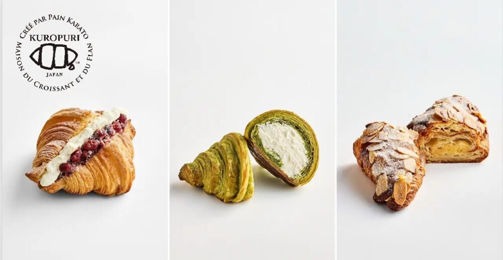 画像:左から、あんこバター詰めクロワッサン、あふれる気持ち!ホイップ詰め京都・辻利抹茶のクロワッサン、クロワッサンプラリネダマンド