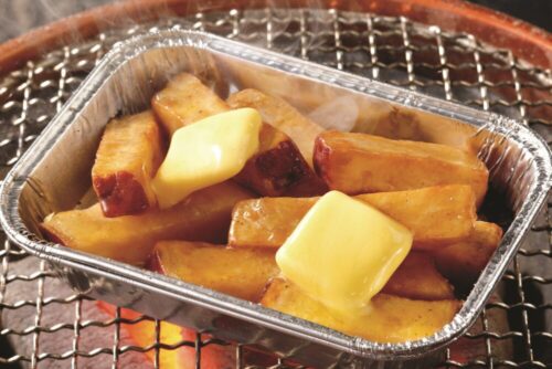 ホクホクで甘みの強いさつまいもに、バターを絡ませて。甘じょっぱさの虜になる女性続出!仕上げに「牛角アイス」を乗せて“熱冷”スイーツにも。