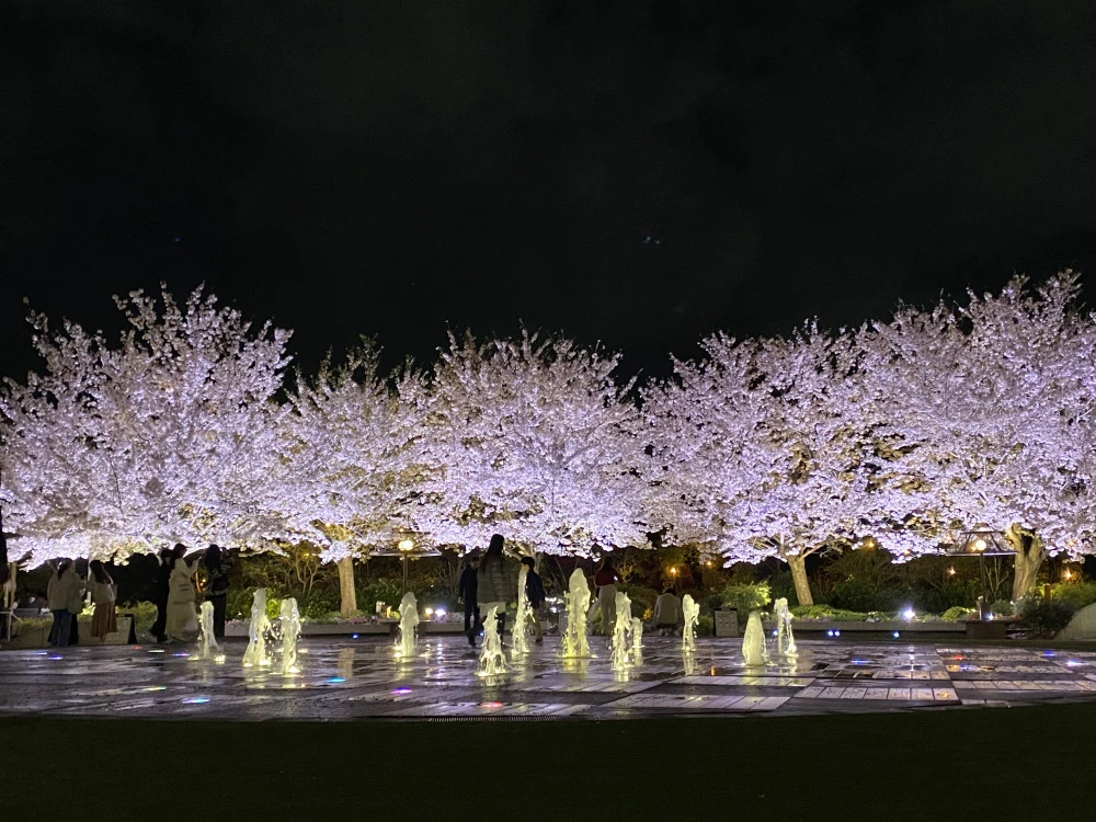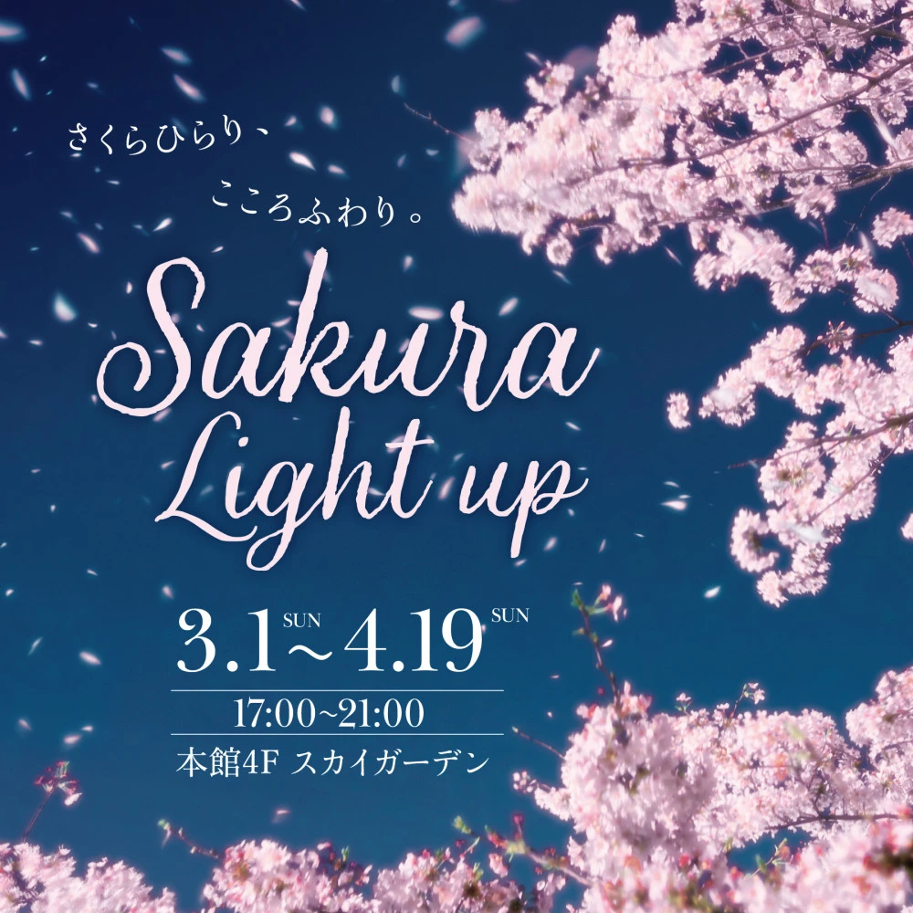 「桜ライトアップ」は、本館4Fにある屋外庭園「スカイガーデン」で見ることができます。