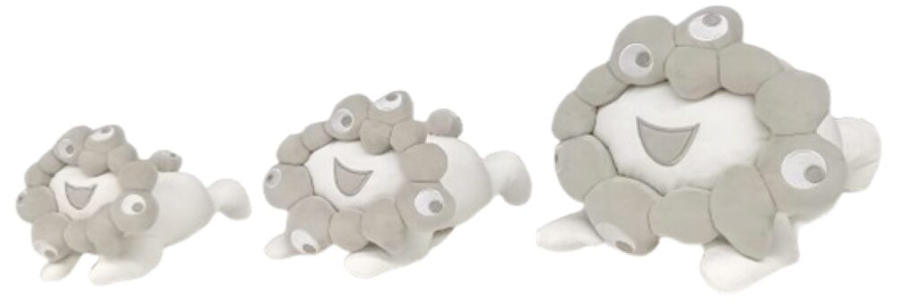 今回は、白ミャクミャクバージョンの「お手玉風ぬいぐるみ/這型ぬいぐるみ/全身ぬいぐるみポーチ」が登場。