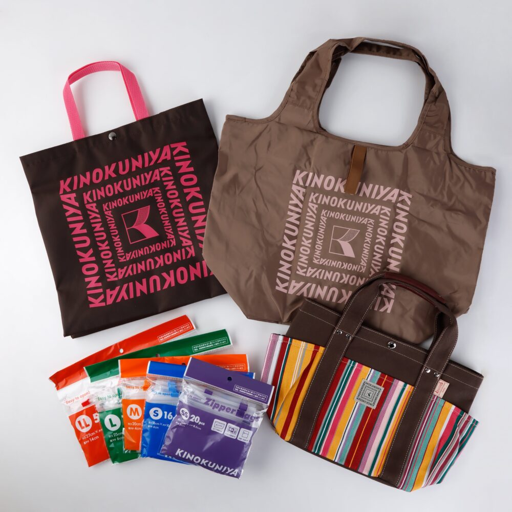 カラーエコバッグやレ・トワール・デュ・ソレイユコラボトート、保冷バッグに加え、サイズ違いのスライドジッパーバッグが入ったセットになっています。