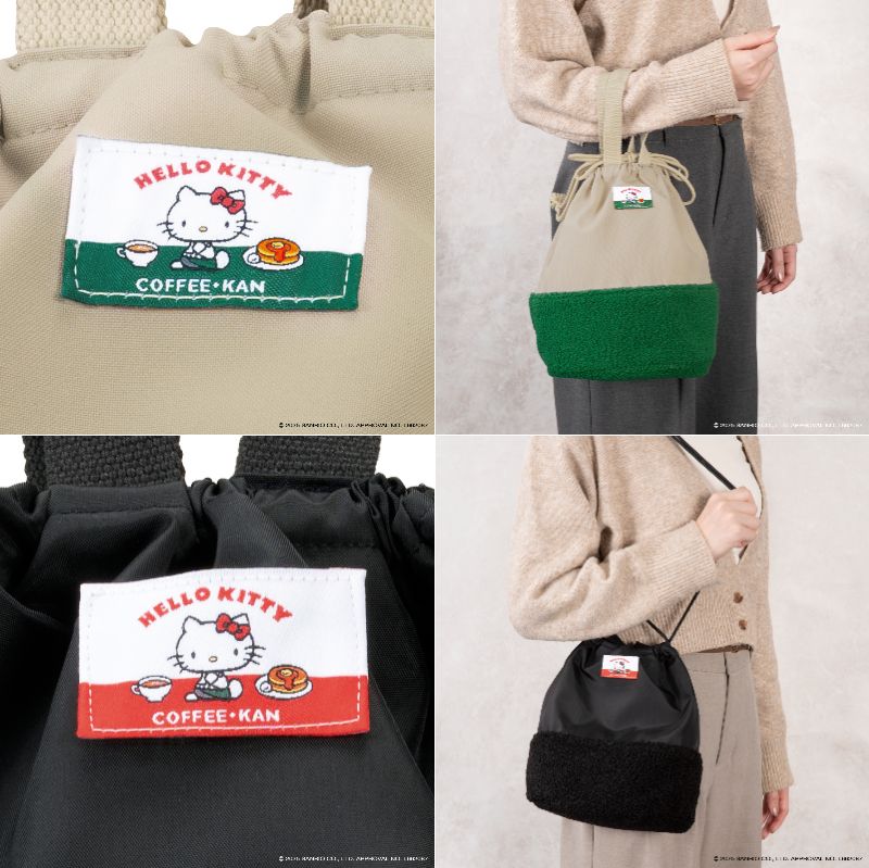 バッグの中央には、1970年代のデビュー当時のハローキティのデザインをベースに、珈琲館の世界観を取り入れたネームタグをステッチ。