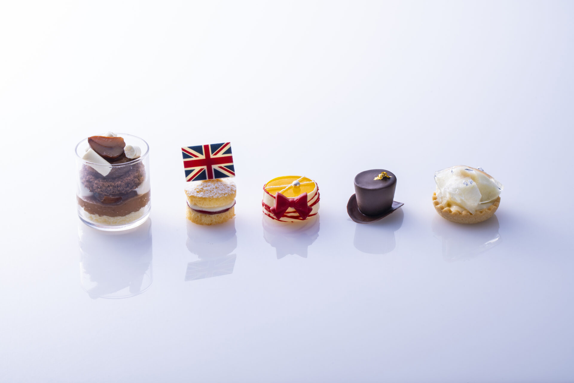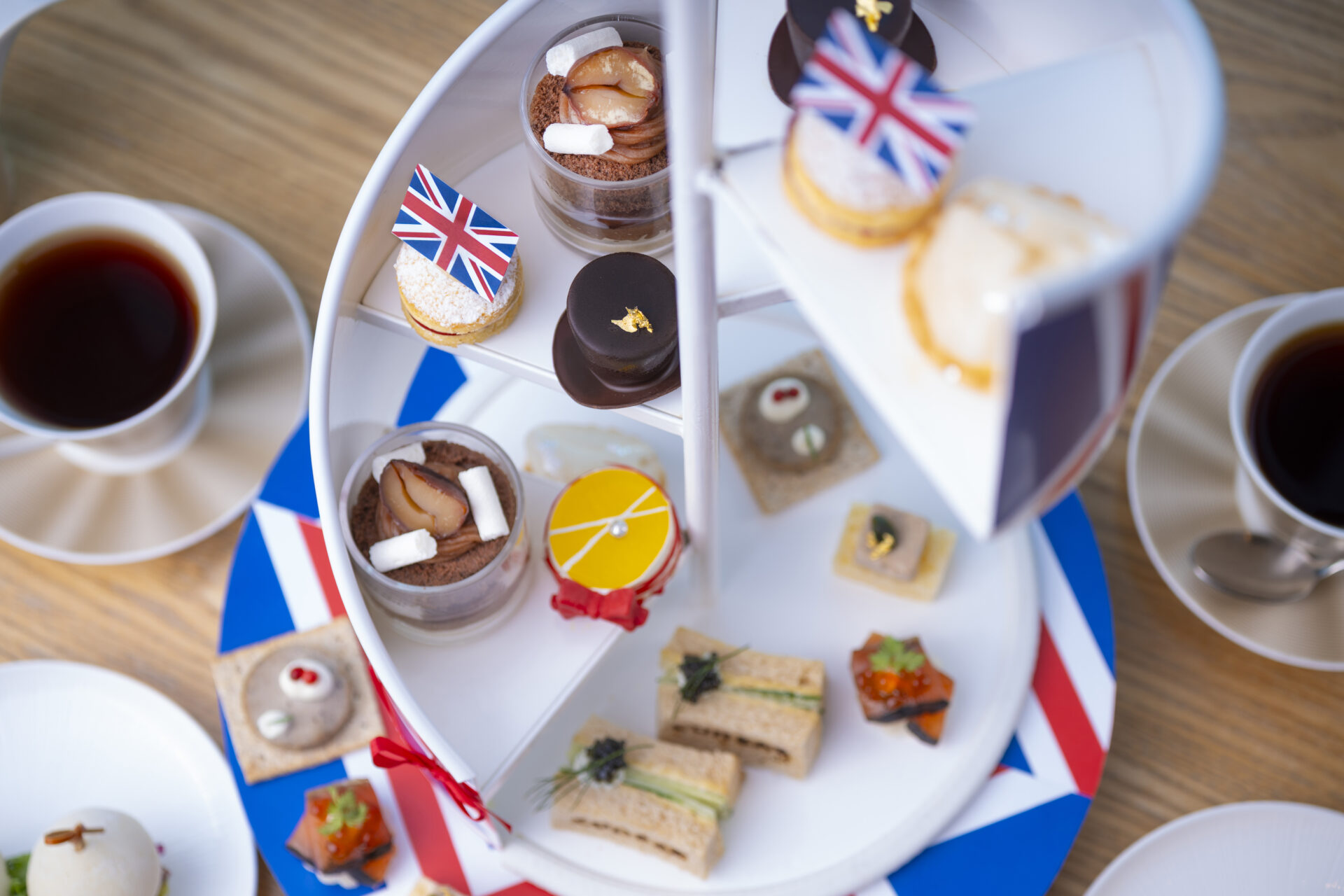 イギリスの国旗ユニオンジャックをイメージしたスタンドと、おしゃれなスイーツとセイボリーで、写真映えも期待できそう。