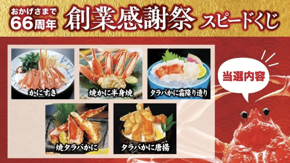チェーン展開している「かに道楽」が、創業66周年を記念した『創業感謝祭』を行います。