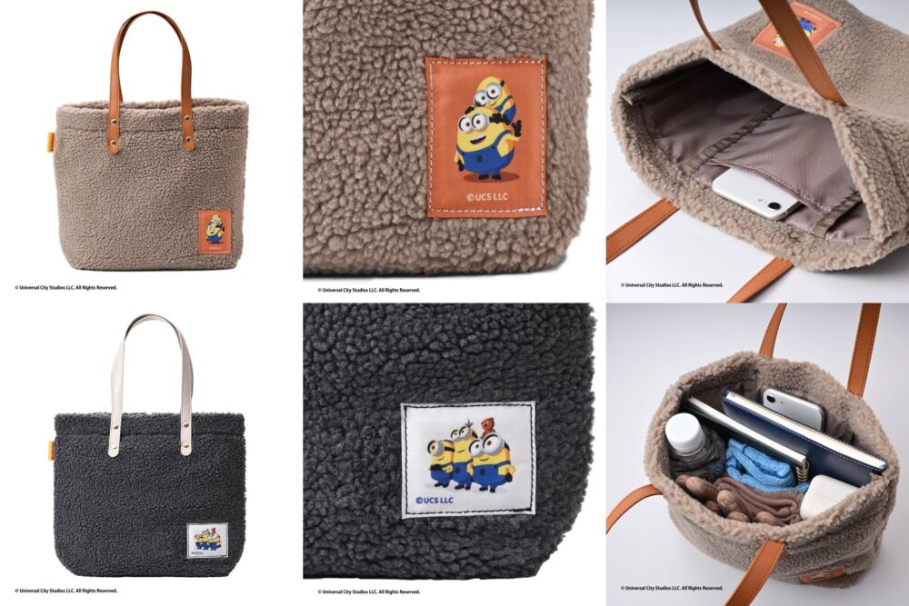 「ボアバッグ」は、冬シーズンにぴったりのふわふわなボア素材を使用し、キュートなミニオンのワッペンをあしらったアイテムで、ワッペンには、仲良しのミニオンたちが遊ぶ愛らしい姿をデザイン。