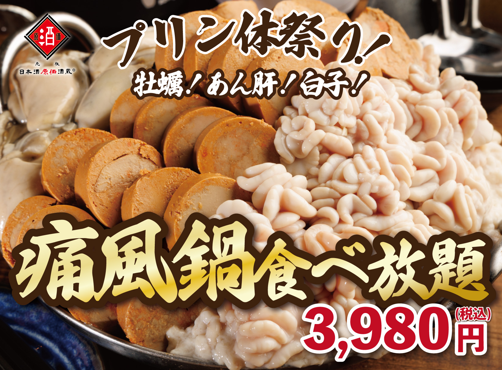 大阪に4店舗ある「日本酒原価酒蔵」で、牡蠣・白子・あん肝が食べ放題の『痛風鍋120分食べ放題』プランが販売されてます。