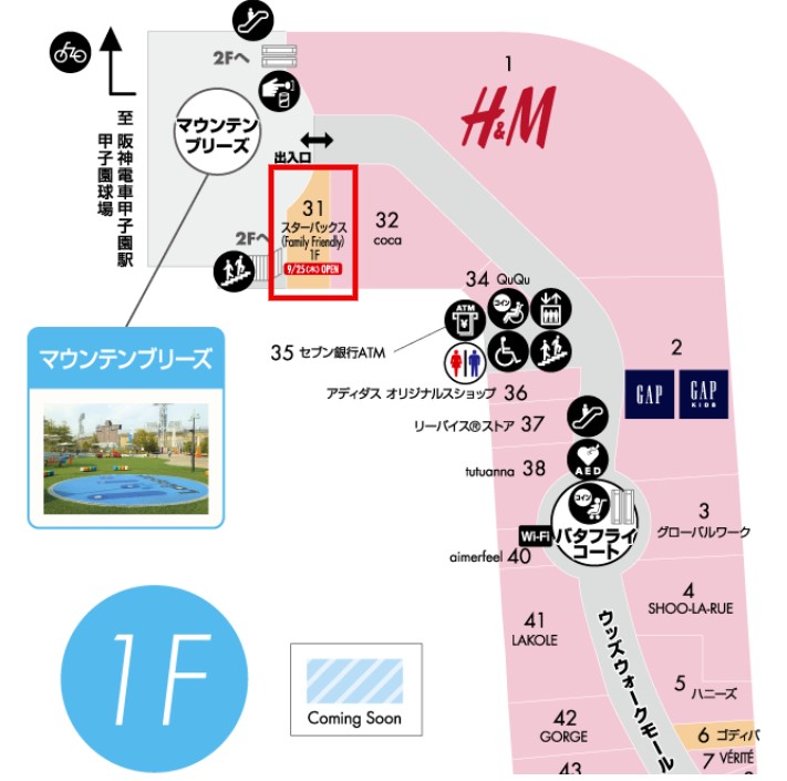 店舗名に「1F」と入っているとおり、以前から2Fにあるスタバも引き続き営業中なので、これでららぽーと甲子園の中にはスタバが2つあることに。
