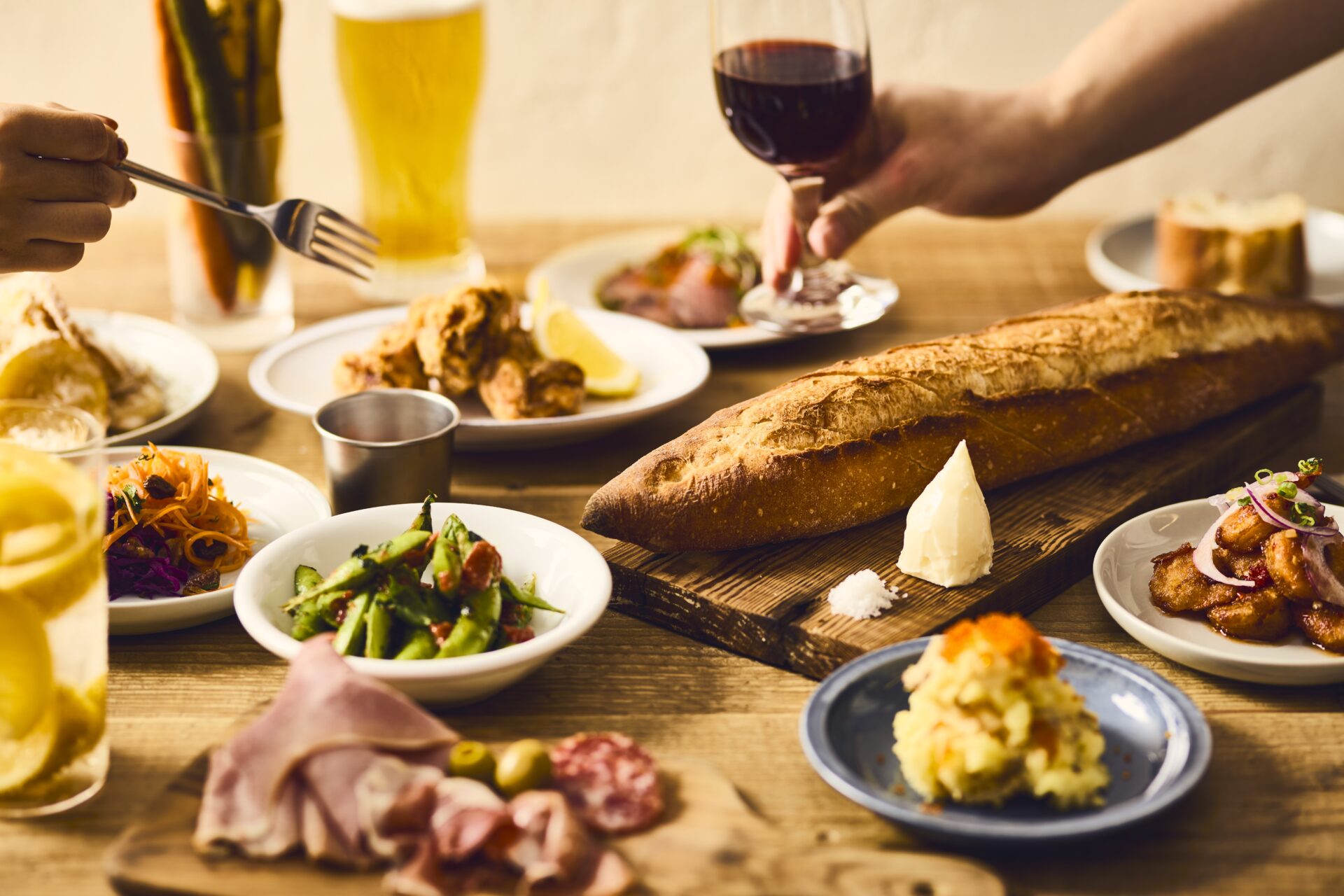 大阪梅田店でしか味わえない商品や、ほうれん草やトマトのフレーバーのカラフルなチャバタなど、日本酒やワインなどと一緒に楽しめるパンも揃えられています。