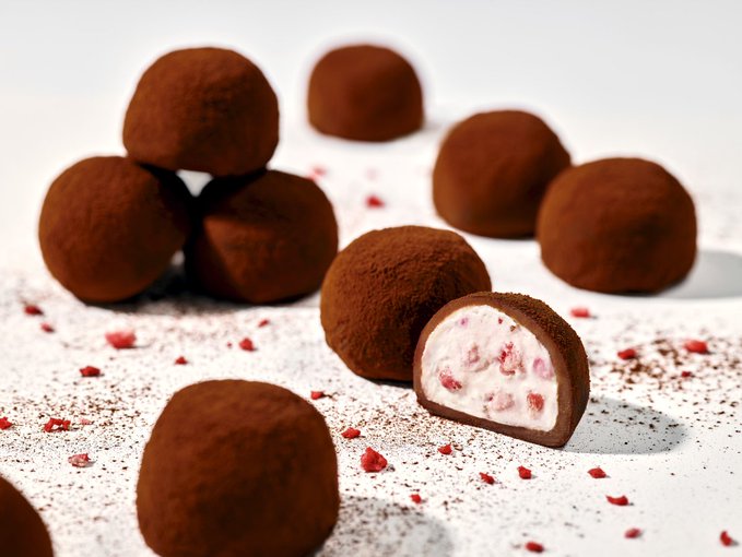 今回の商品ラインナップは、SNOWSの代表商品の「スノーサンド」にくわえて、甘酸っぱい苺の“ダブル生”トリュフチョコ「スノーボール 赤」や、生トリュフチョコ「スノーボール 黒」などです。