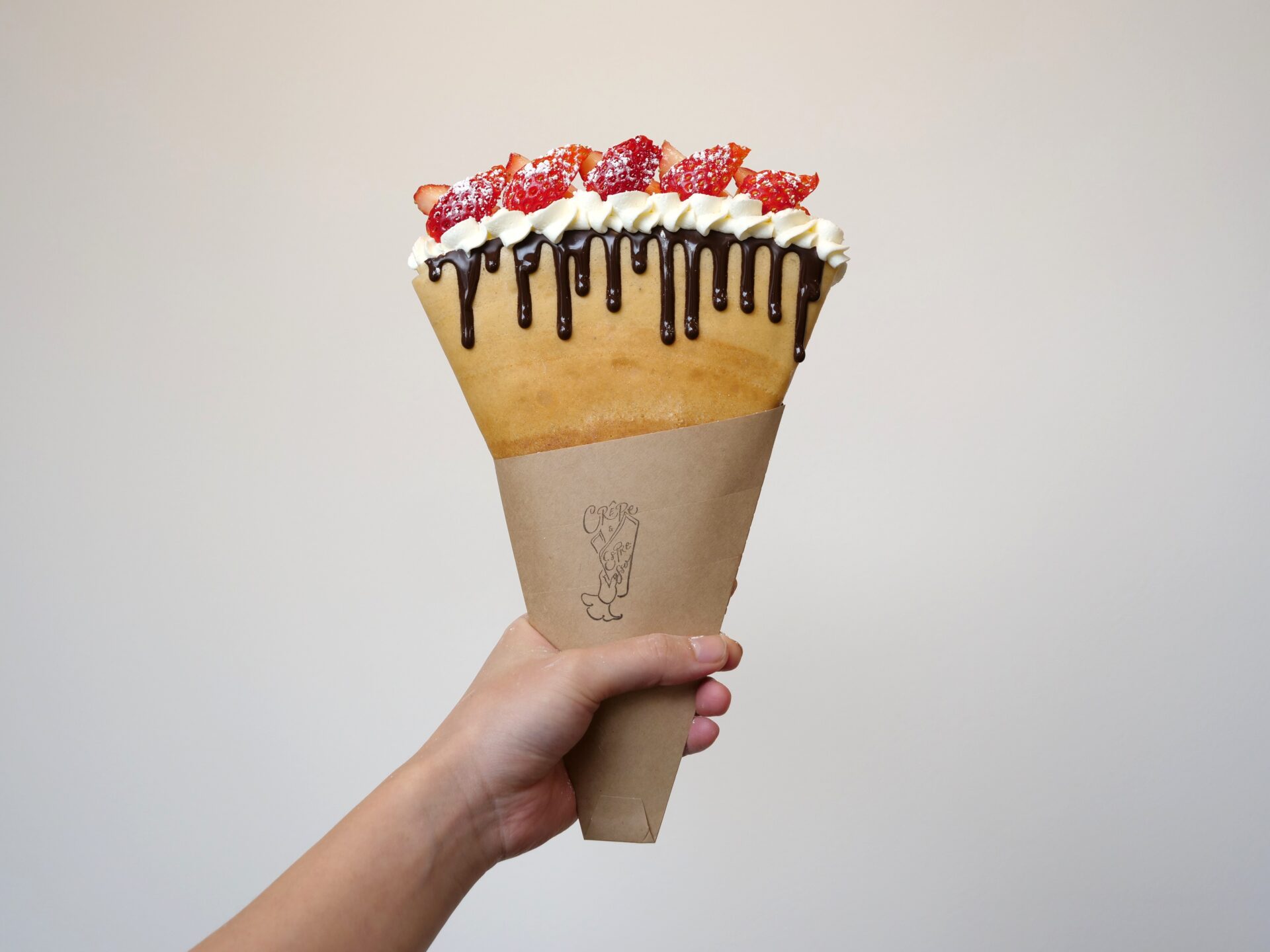 「クレープとエスプレッソと」は、パリパリ、サクサクとした軽やかな⾷感と、クッキーのような⾹ばしさが特徴の「⻩⾦クレープ」を食べられるお店。1年半の歳月をかけて開発したそうです。
