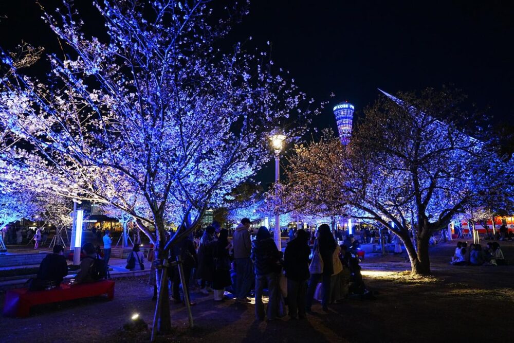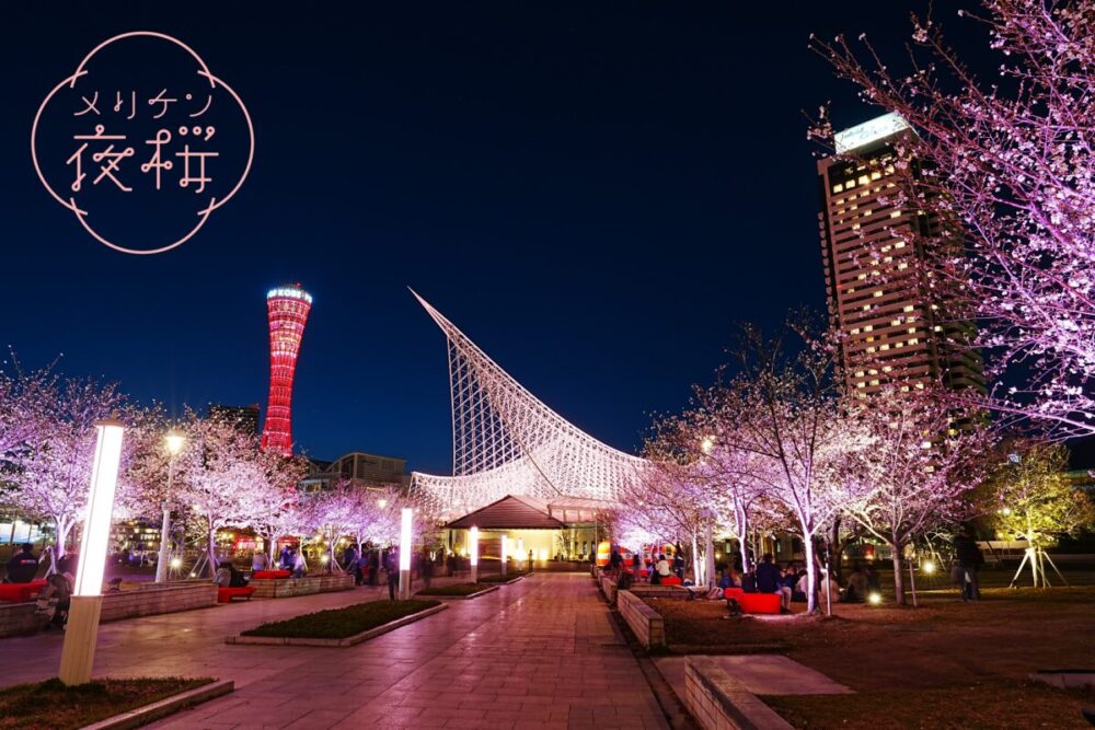 メリケンパークで、桜・神戸ポートタワー・BE KOBEモニュメントなどがライトアップされる『メリケン夜桜』が開催されます。一部日程では、音楽ライブ「メリケンミュージックナイツ」も開催予定です。